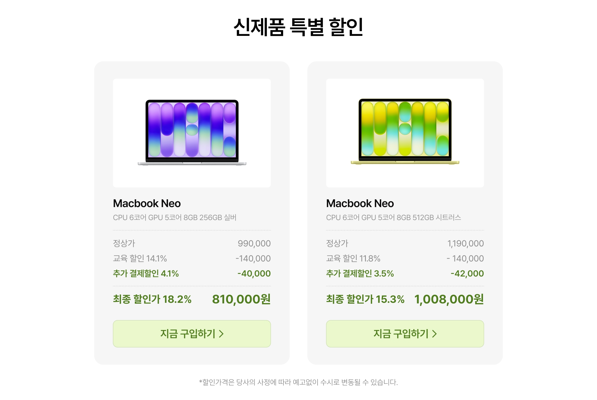 (예약판매) MacBook Neo 13 (A18 Pro) CPU 6코어 GPU 5코어 8GB 256GB 실버