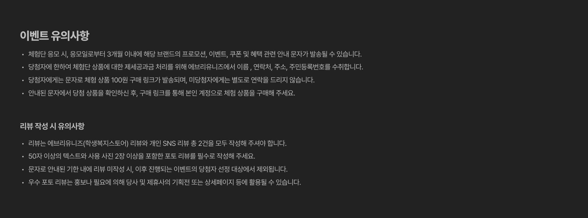 이벤트 유의사항 (필수)