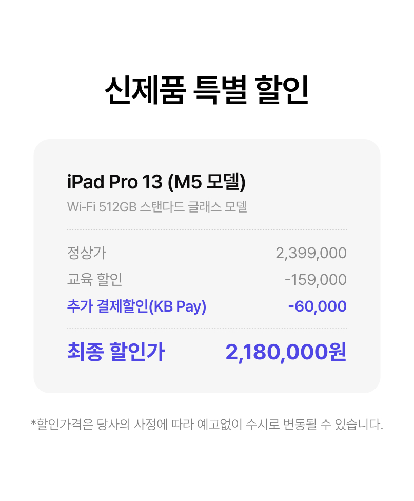 - 배송지역은 국내로 한정되며, 군부대 및 해외 배송이 불가합니다. - 배송은 상품정보에 별도로 기입된 제조사 직접 배송, 또는 공급사가 배송을 위탁한 업체를 통해 진행됩니다. - Apple 제품은 브랜드의 교육 할인 정책에 의하여 연간 품목별(iPad 및 Mac 등) 2대까지로 구매 수량이 제한됩니다. 연간 구매 수량을 초과하거나, 본인의 실사용 목적이 아닌 것으로 의심되는 거래는 배송이 진행되지 않으며, 주문이 취소될 수 있습니다. 관련하여 문의 및 상담은 1:1 대화, 혹은 실시간 채팅 문의를 통해 요청해주세요. - 대부분의 상품은 영업일 기준 2~14일 내에 배송됩니다. 단, 천재지변, 점검, 품절 등 불가피한 사유가 있을 경우 배송은 지연될 수 있습니다. - 발송된 제품의 송장번호는 출고일 오후 6시 이후 문자를 통해 안내드리고 있습니다. 보내드린 url을 통해 배송 조회가 불가하신 경우, 출고량이 많아 번호가 우선 등록된 상황으로 자세한 정보는 당일 늦은 시간에 확인하실 수 있습니다. - 에브리유니즈에서 판매중인 제품은 택배 수령만 가능하며 방문 수령, 퀵서비스, 예약 발송, 각인 서비스는 지원하지 않습니다. - 주문 완료 후에는 결제 수단 변경, 할부 결제 개월 수 변경 등으로 인한 결제 정보 변경과 용량, 색상 등의 제품 변경이 불가합니다. 주문을 취소하신 후 재주문해 주세요. - 배송 대기 중(배송준비) 상태에서 주문 취소 요청 시, 1:1 대화 혹은 문의하기를 통해 요청해주세요. 이 경우, 상품이 이미 출고되어 취소 요청이 거부될 수 있습니다.