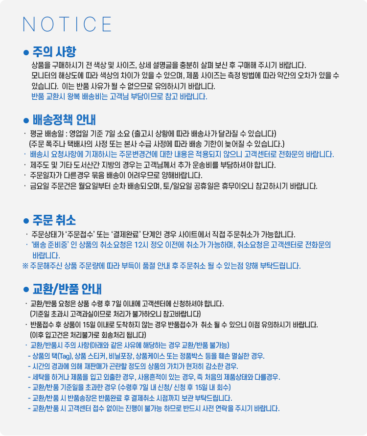 교환, 반품 안내