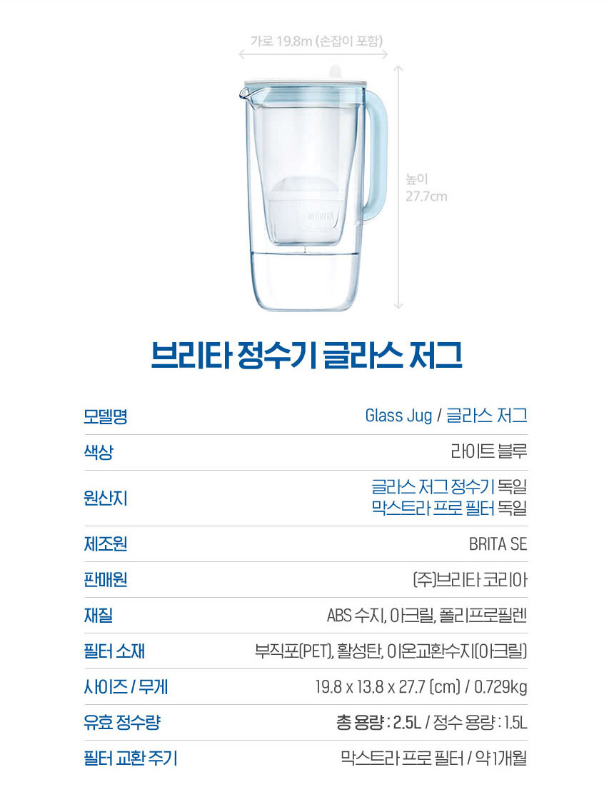 - 품명 및 모델명: 글라스저그 2.5L + 기본필터 1입