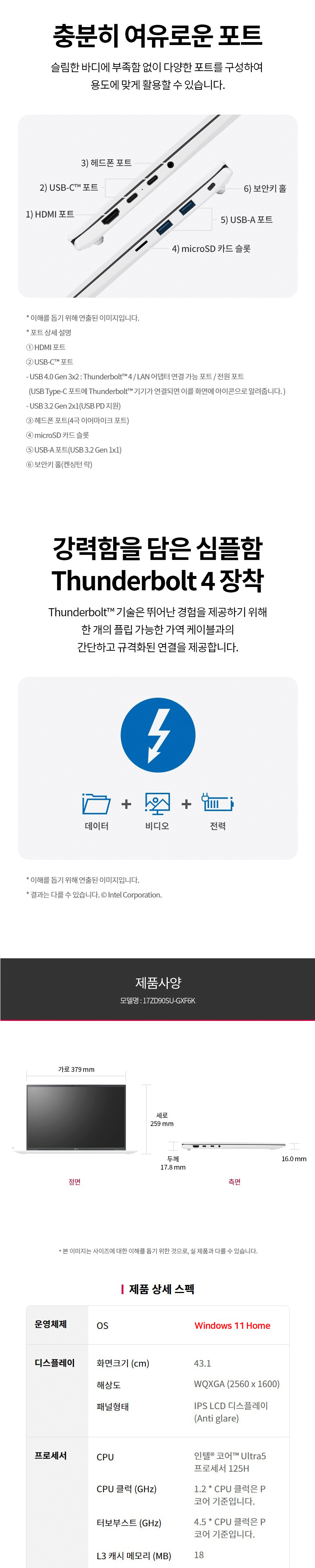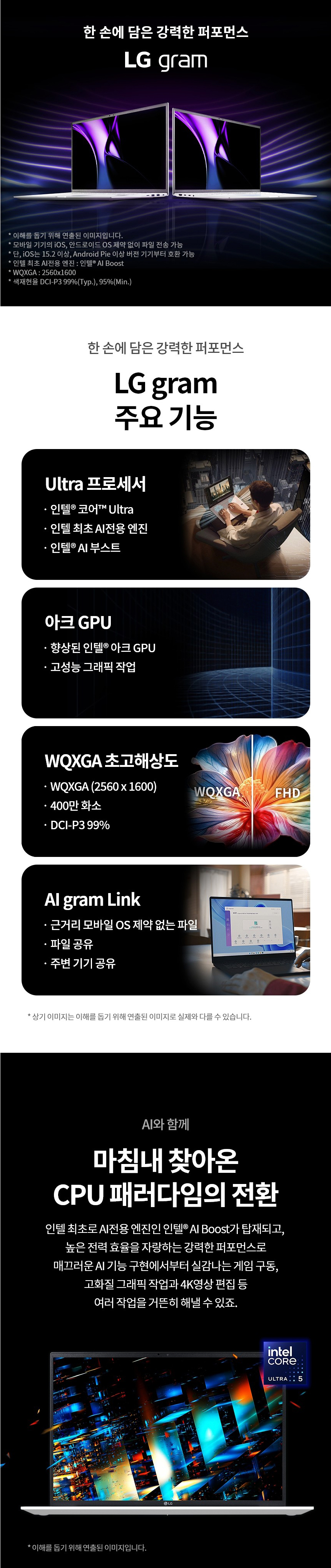 - 주요 사양: 인텔 Ultra5, 8GB+확장 슬롯1, WQXGA 2560 x 1600 초고해상도