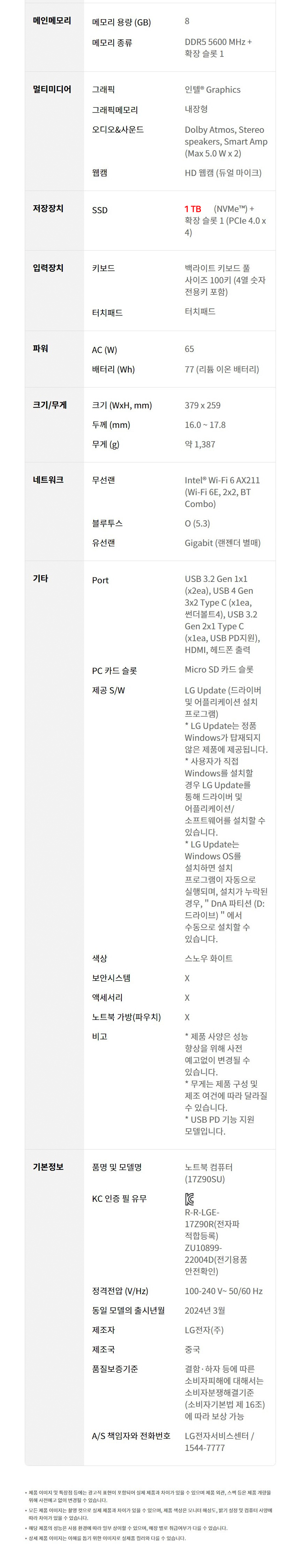 - 품명 및 모델명: 노트북 컴퓨터 (1ZZ90SU)