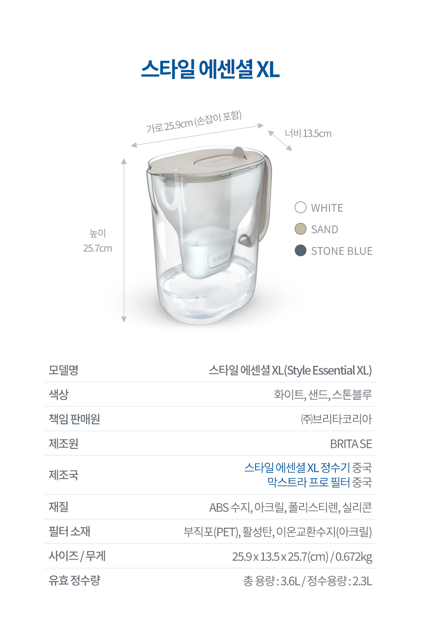 - 품명 및 모델명: 스타일에센셜 XL + 기본필터 1입