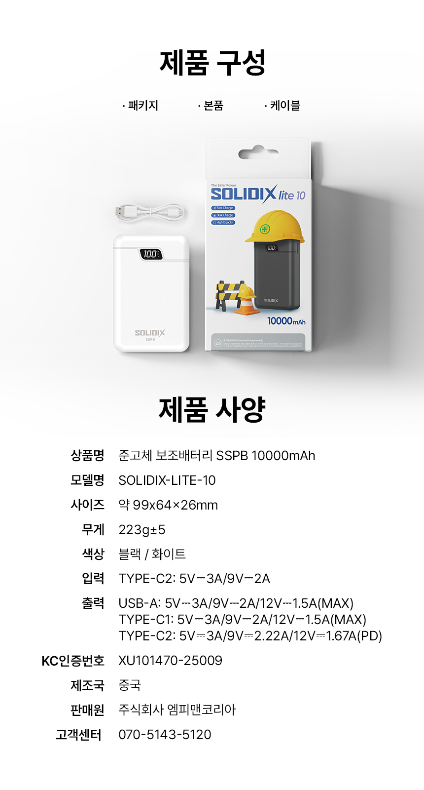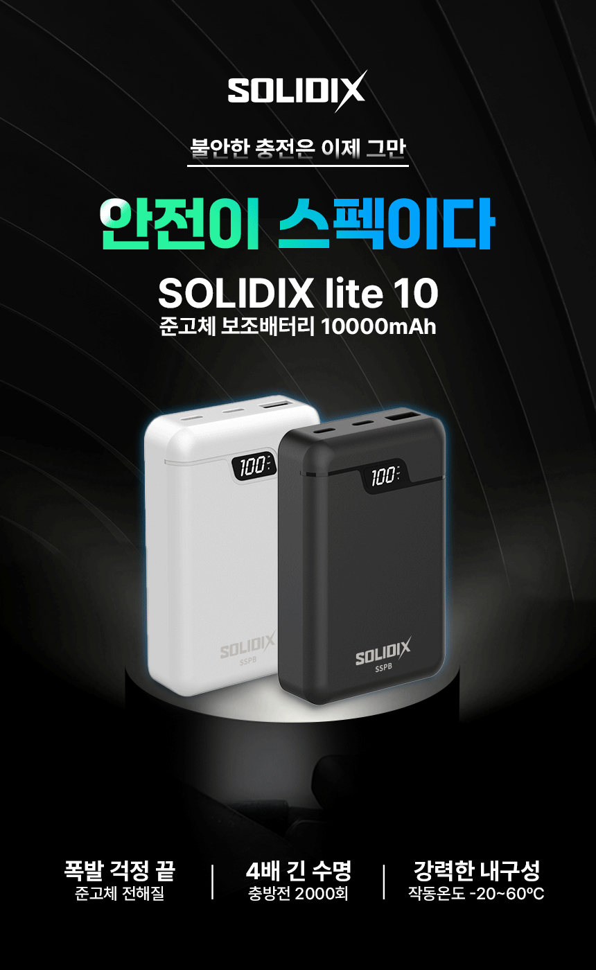 - 품명 및 모델명: 솔리딕스 lite 10 준고체 보조배터리 10000 기내반입 / SOLIDIX-LITE-10