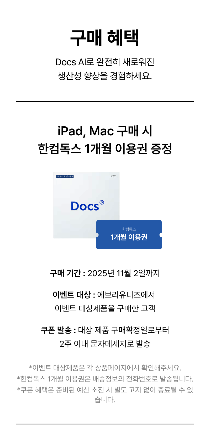 - 배송지역은 국내로 한정되며, 군부대 및 해외 배송이 불가합니다. - 배송은 상품정보에 별도로 기입된 제조사 직접 배송, 또는 공급사가 배송을 위탁한 업체를 통해 진행됩니다. - Apple 제품은 브랜드의 교육 할인 정책에 의하여 연간 품목별(iPad 및 Mac 등) 2대까지로 구매 수량이 제한됩니다. 연간 구매 수량을 초과하거나, 본인의 실사용 목적이 아닌 것으로 의심되는 거래는 배송이 진행되지 않으며, 주문이 취소될 수 있습니다. 관련하여 문의 및 상담은 1:1 대화, 혹은 실시간 채팅 문의를 통해 요청해주세요. - 대부분의 상품은 영업일 기준 2~14일 내에 배송됩니다. 단, 천재지변, 점검, 품절 등 불가피한 사유가 있을 경우 배송은 지연될 수 있습니다. - 발송된 제품의 송장번호는 출고일 오후 6시 이후 문자를 통해 안내드리고 있습니다. 보내드린 url을 통해 배송 조회가 불가하신 경우, 출고량이 많아 번호가 우선 등록된 상황으로 자세한 정보는 당일 늦은 시간에 확인하실 수 있습니다. - 에브리유니즈에서 판매중인 제품은 택배 수령만 가능하며 방문 수령, 퀵서비스, 예약 발송, 각인 서비스는 지원하지 않습니다. - 주문 완료 후에는 결제 수단 변경, 할부 결제 개월 수 변경 등으로 인한 결제 정보 변경과 용량, 색상 등의 제품 변경이 불가합니다. 주문을 취소하신 후 재주문해 주세요. - 배송 대기 중(배송준비) 상태에서 주문 취소 요청 시, 1:1 대화 혹은 문의하기를 통해 요청해주세요. 이 경우, 상품이 이미 출고되어 취소 요청이 거부될 수 있습니다.