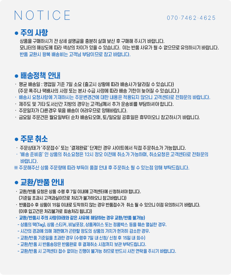 교환, 반품 안내