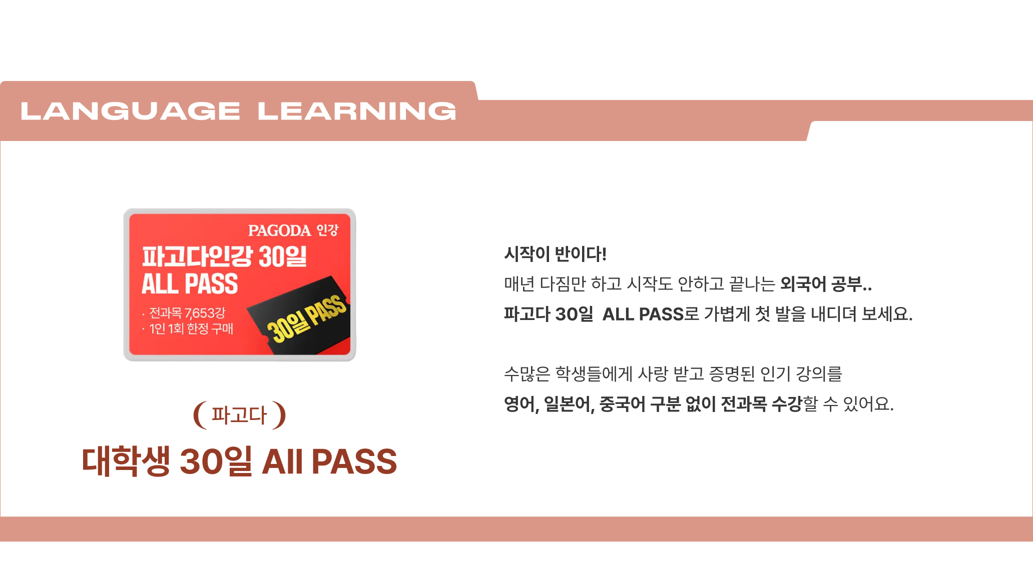 대학생 30일 ALL PASS(1인 1회 한정구매)