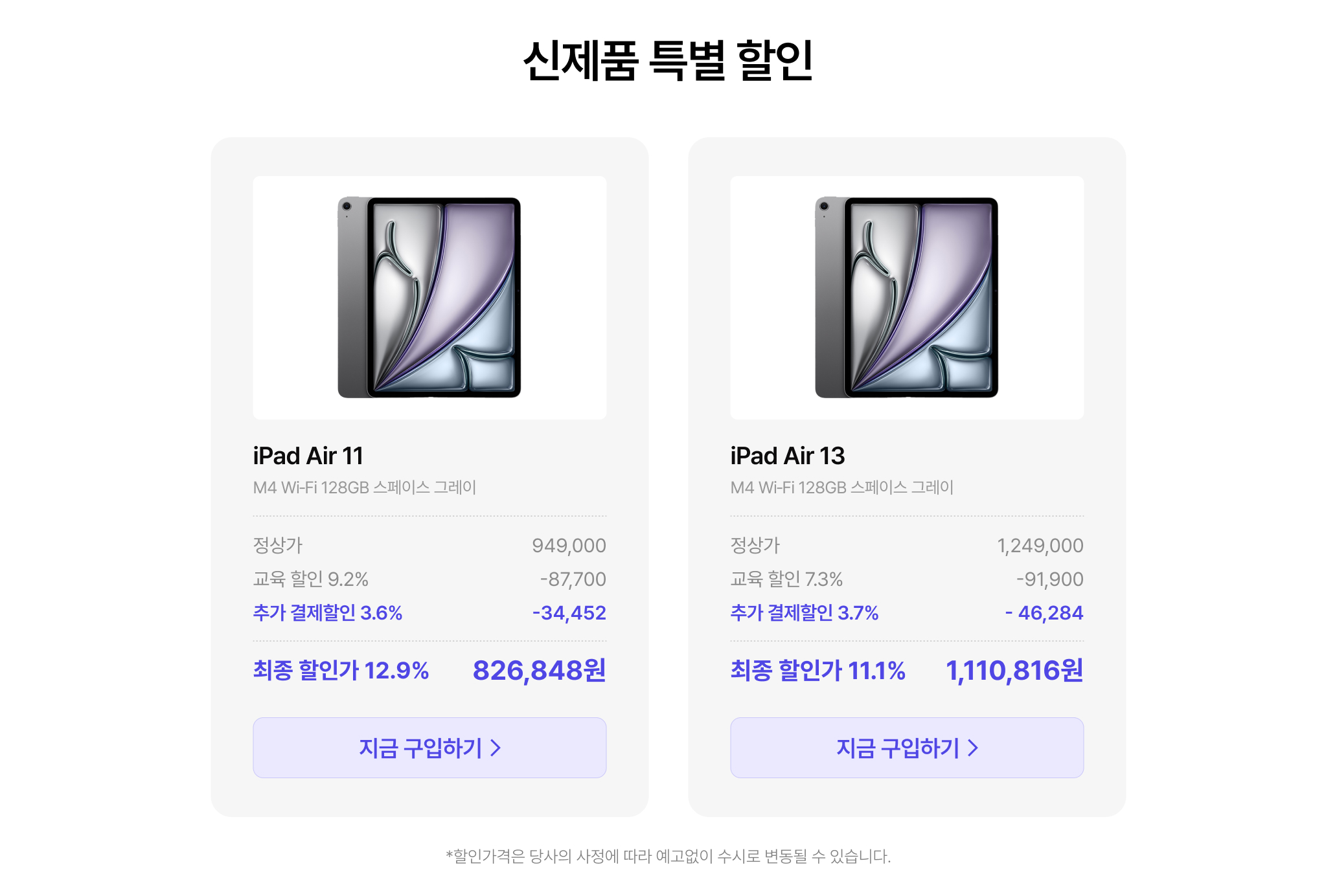 (사전예약) iPad Air 13(M4 모델) Wi‑Fi 128GB 스페이스 그레이