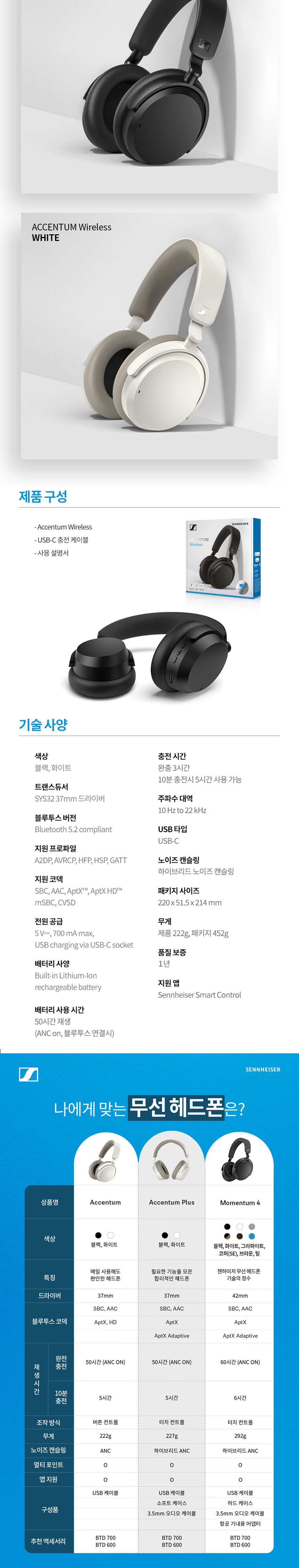 - 품명 및 모델명: SOUND SENNHEISER Accentum WH