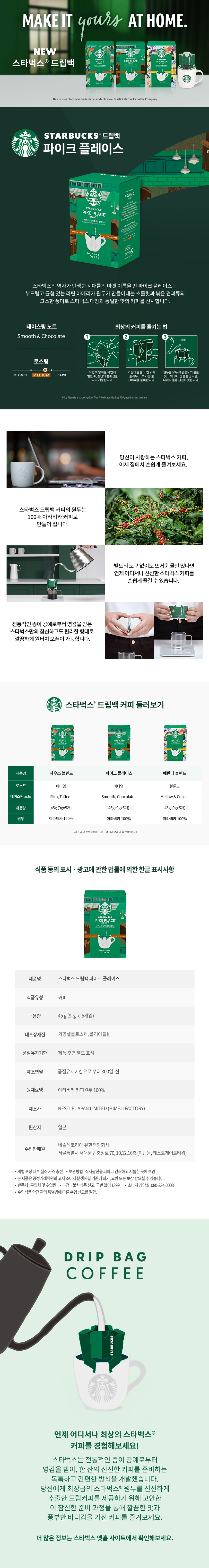 - 제품명: [스타벅스] 드립백 미디엄 5T (파이크 플레이스) 3박스