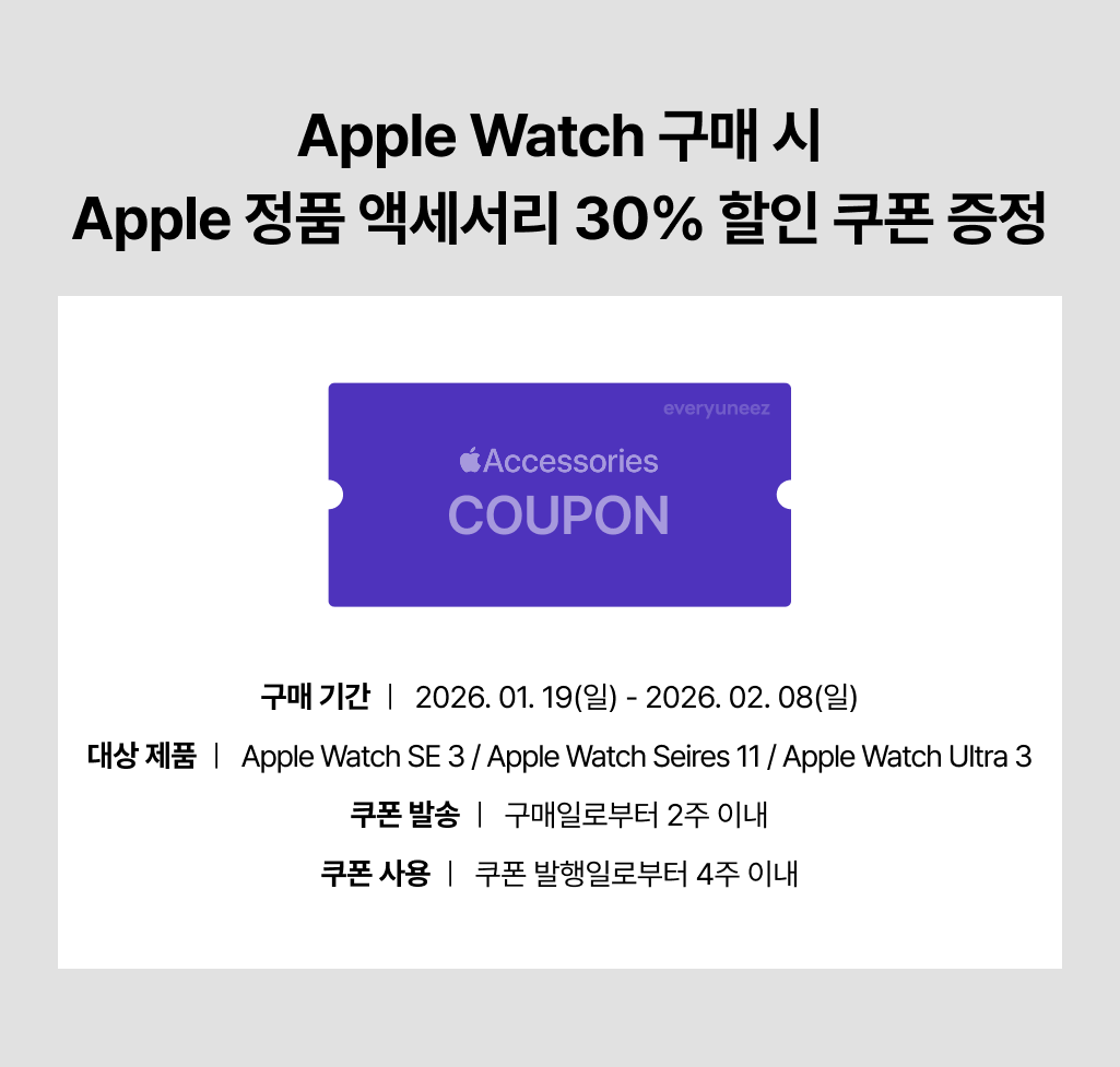 - 모든 제품은 단순 변심에 의한 환불 요청 시, 미개봉 상태에서만 가능합니다. - 단순 변심, 착오 구매에 따른 교환/반품 신청은 상품을 공급받은 날부터 7일 이내에만 가능합니다. - 상품 불량 또는 오배송으로 인한 교환·반품 신청의 경우, 고객님께 배송비가 청구되지 않습니다. - 단순 변심으로 인한 교환/반품 신청의 경우, 고객님께 포장 단위(박스 등) 당 왕복 배송비가 부과됩니다. - 교환/반품 절차를 받으실 경우에는 제품 수령 시 받으셨던 제품과 사은품 등 모든 구성품을 반환하셔야 처리가 가능합니다. - 교환 및 반품 처리 시, 기기에 필름 등이 부착되어있을 경우, 제거될 수 있으며 보상 받으실 수 없습니다. - 교환·반품 문의는 에브리유니즈 고객센터로 문의해 주시기 바랍니다. - 교환·반품은 접수 후 순차적으로 상품 상태 확인 및 검수를 거쳐 교환 또는 환불이 진행됩니다. 처리에는 일정 기간이 소요될 수 있습니다 - 에브리유니즈에서 판매하는 모든 애플 제품은 애플코리아 정품입니다. 에브리유니즈는 애플코리아 공인 리셀러(Apple Authorized Reseller)로서, 고객님께 새 제품을 배송해드리고 있습니다. - 모든 애플코리아 정품 제품의 교환 및 반품 절차는 Apple 공식 A/S 가이드에 의거하여 처리됩니다. - 단순 변심, 주문 실수로 인한 교환 및 반품 요청 시 제품 판매 가치가 훼손되지 않은 경우에 한하여 가능합니다. 제품의 개봉 후에는 초기 불량 확인 제품을 제외하고는 교환 및 반품이 불가합니다. - 모든 Apple 제품은 액정 및 바디 등 외관상의 긁힘, 찍힘, 잉크 자국, 휨 등의 이유로는 교환 및 환불이 불가합니다. - 불량 접수 기한은 수령일로부터 10일 이내입니다. - 모든 애플 제품의 초기 불량은 Apple 서비스 정책에 따라 공인 서비스 센터에서 도움받으실 수 있습니다. 초기 불량이 의심되어 교환이나 수리를 필요로하시는 경우에는 가까운 공인 서비스 센터를 통해 서비스를 진행해주세요. (Apple 공인 서비스 제공업체 위치 찾기 : https://getsupport.apple.com/) - 제품의 불량으로 인정되어 서비스 센터 방문 없이 즉시 에브리유니즈에서의 교환 및 환불이 가능한 증상은 아래와 같습니다. 이 외 증상은 애플 공인 서비스 센터를 통해 전문가와의 상담 후, 서비스가 진행됩니다. - 1) 제품의 전원이 들어오지 않음 - 2) 배터리가 충전되지 않거나 충전 상태가 유지되지 않음 - 3) 키보드를 입력하였으나 응답하지 않음 - 4) 상자에서 개봉하여 최초 사용할 때 기본 작동이 불가능한 기타 하드웨어 고장 - 기기 등에 Apple 및 iCloud 계정을 로그인 하신 경우와 비밀번호로 잠겨 있는 경우에는 로그아웃을 해주시고 기기의 잠금을 해제한 후 교환 및 반품 처리가 가능합니다.