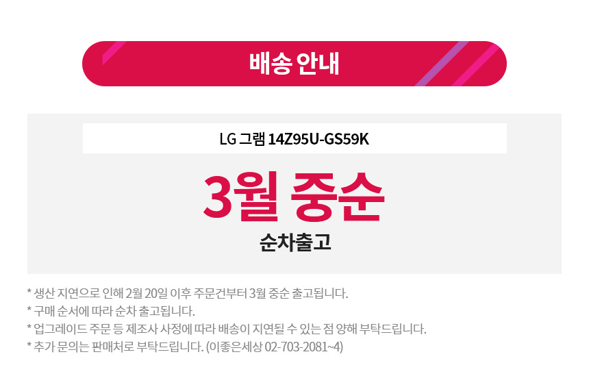 - 배송지역은 국내로 한정되며, 군부대 및 해외 배송이 불가합니다. - 배송은 상품정보에 별도로 기입된 제조사 직접 배송, 또는 공급사가 배송을 위탁한 업체를 통해 진행됩니다. - Apple 제품은 브랜드의 교육 할인 정책에 의하여 연간 품목별(iPad 및 Mac 등) 2대까지로 구매 수량이 제한됩니다. 연간 구매 수량을 초과하거나, 본인의 실사용 목적이 아닌 것으로 의심되는 거래는 배송이 진행되지 않으며, 주문이 취소될 수 있습니다. 관련하여 문의 및 상담은 1:1 대화, 혹은 실시간 채팅 문의를 통해 요청해주세요. - 대부분의 상품은 영업일 기준 2~14일 내에 배송됩니다. 단, 천재지변, 점검, 품절 등 불가피한 사유가 있을 경우 배송은 지연될 수 있습니다. - 발송된 제품의 송장번호는 출고일 오후 6시 이후 문자를 통해 안내드리고 있습니다. 보내드린 url을 통해 배송 조회가 불가하신 경우, 출고량이 많아 번호가 우선 등록된 상황으로 자세한 정보는 당일 늦은 시간에 확인하실 수 있습니다. - 에브리유니즈에서 판매중인 제품은 택배 수령만 가능하며 방문 수령, 퀵서비스, 예약 발송, 각인 서비스는 지원하지 않습니다. - 주문 완료 후에는 결제 수단 변경, 할부 결제 개월 수 변경 등으로 인한 결제 정보 변경과 용량, 색상 등의 제품 변경이 불가합니다. 주문을 취소하신 후 재주문해 주세요. - 배송 준비 중 상태에서 주문 취소 요청 시, 1:1 대화 혹은 문의하기를 통해 요청해주세요. 이 경우, 상품이 이미 출고되어 취소 요청이 거부될 수 있습니다.