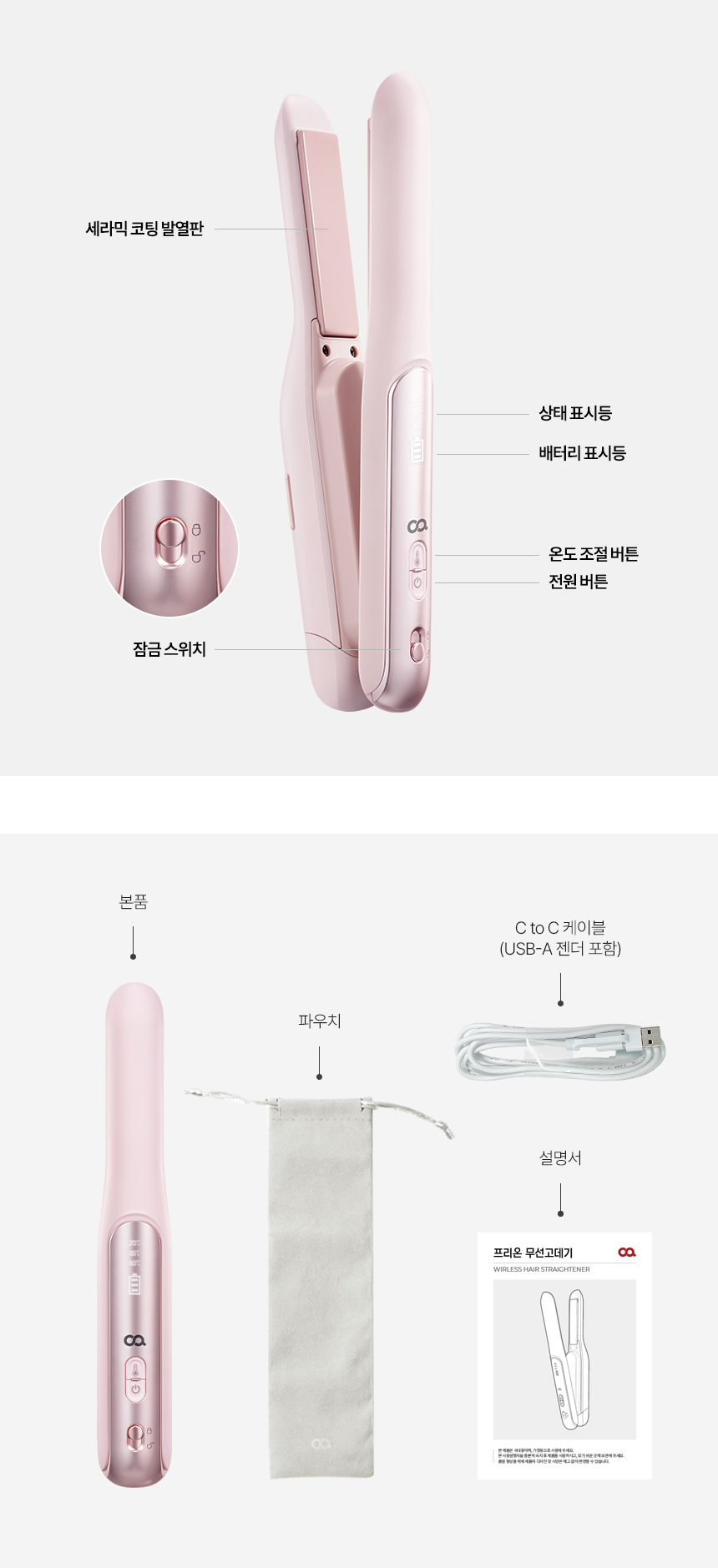 - 품명 및 모델명: 오아프리온무선고데기-핑크 / OSTR-013PK