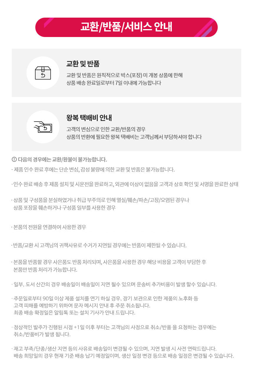 교환, 반품 안내